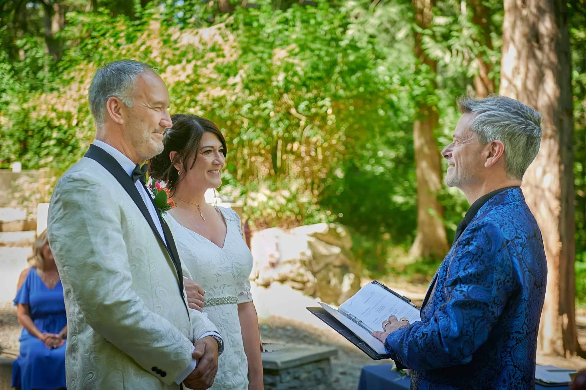 james took the time to get to know us as a couple and crafted a ceremony that was deeply personal. his delivery was filled with just the right mix of emotion and lightheartedness. he has this incredible ability to make us and all of our guests feel completely present in the moment. our guests said it was the most beautiful ceremony they’d ever seen. his calming presence, incredible sense of style, and heartfelt words were a highlight of the day. if you're looking for someone who’ll make your special moment absolutely perfect, james is the one. thank you from the bottom of our hearts.