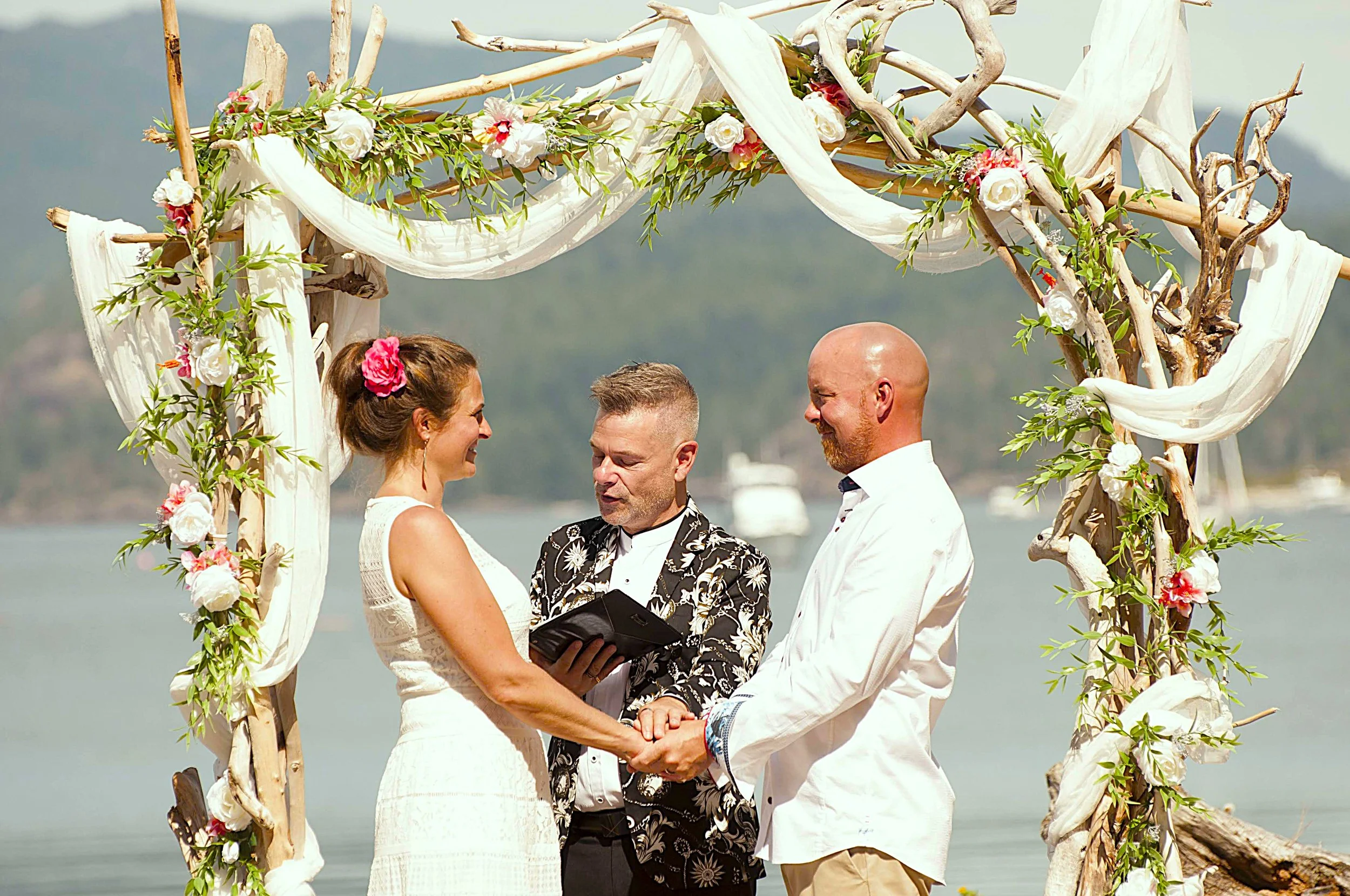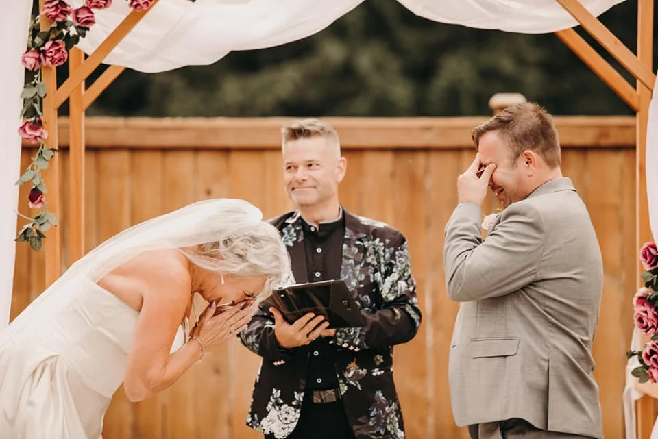 All my ceremonies include an initial in-person or virtual consultation, how to make it yours, laughter, tears, room for personal vows, ring exchange, readings/poems, and the processing of your BC marriage license¹ after the ceremony and travel².